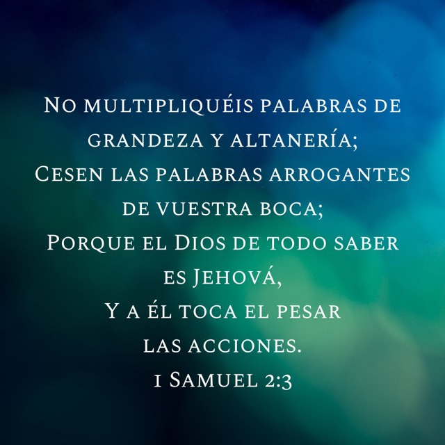 • 📖 “No multipliquéis palabras de grandeza y altanería; Cesen las palabras arrogantes de vuestra boca; Porque el Dios de todo saber es Jehová, Y a él toca el pesar las acciones” I Samuel 2:3.